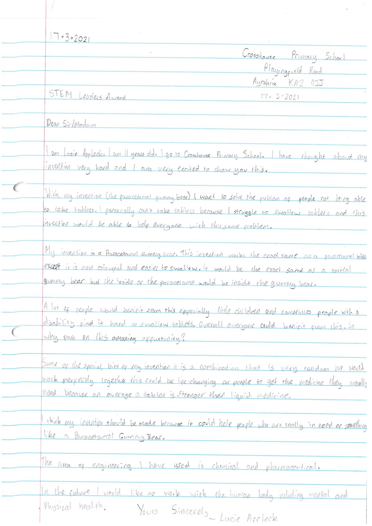 Posted on June 24, 2021 / in Lucie A – P7 – Crosshouse Primary School (1) Share Tweet Pin It Share Send